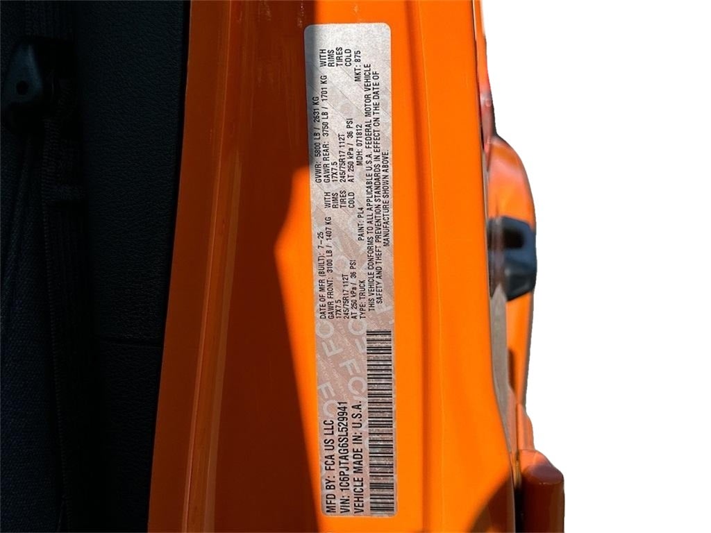 Gladiator Sport S, 4D Crew Cab, 3.6L V6 24V VVT, 8-Speed Automatic, 4WD, Joose, Black Cloth, 110 MPH Vehicle Max Speed Calibration, 12.3 Touchscreen Display, 3.73 Rear Axle Ratio, 4-Wheel Disc Brakes, 4G LTE Wi-Fi Hot Spot, 8 Speakers, ABS brakes, Advanced Brake Assist, Air Conditioning, Air Conditioning w/Auto Temperature Control, Alexa Built-In, AM/FM radio: SiriusXM, Apple CarPlay, Apple CarPlay/Android Auto, Automatic Headlamps, Auxiliary Switches, Body Color 3-Piece Hard Top, Body Color Fender Flares (2-Piece), Brake assist, Class IV Receiver Hitch, Cloth Low-Back Bucket Seats, Cluster 7.0 TFT Color Display, Compass, Connectivity - US/Canada, Convenience Group, Corning Gorilla Glass, Dark Sky Appearance Package, Daytime Running Lamp System, Daytime Running Lamps LED Accents, Deep Tint Sunscreen Windows, Delay-off headlights, Driver door bin, Driver vanity mirror, Dual front impact airbags, Dual front side impact airbags, Electronic Stability Control, Emergency/Assistance Call, Enhanced Adaptive Cruise Control, Freedom Panel Storage Bag, Front anti-roll bar, Front Bucket Seats, Front Center Armrest w/Storage, Front Door Locks 2-Door Passive Entry, Front fog lights, Front LED Fog Lamps, Front reading lights, Full Speed Forward Collision Warning Plus, Google Android Auto, Heated Front Seats, Heated Steering Wheel, Heavy-Duty Engine Cooling, Illuminated entry, Integrated Center Stack Radio, Integrated roll-over protection, LED Headlamp & Fog Lamp Group, LED Premium Reflector Headlamps, Low tire pressure warning, Mold In Color Bumper w/Gloss Black, Molded-In-Color Fender Flares (2 Pcs Fr/1 Pc Rr), Mopar Black Tubular Side Steps, MOPAR Spray In Bedliner, No Soft Top, Normal Duty Plus Suspension, Normal Duty Suspension, Occupant sensing airbag, Outside temperature display, Overhead airbag, Panic alarm, ParkView Rear Back-Up Camera, Passenger door bin, Passenger vanity mirror, Performance Hood, Power Heated Mirrors, Power steering, Power windows, Premium Wrapped Steering Wheel, Quick Order Package 24S Sport S, Radio data system, Radio: Uconnect 5 w/12.3 Display, Rear anti-roll bar, Rear reading lights, Rear Sliding Window, Rear Window Defroster, Remote keyless entry, Remote Start System, Security Alarm, SiriusXM Radio Service, SiriusXM w/360L, Speed control, Split folding rear seat, Steering wheel mounted audio controls, Sun Visors w/Illuminated Vanity Mirrors, Tachometer, Telescoping steering wheel, Tilt steering wheel, Traction control, Trailer Hitch Zoom, Trailer Tow & Aux Switch Group, Trip computer, Universal Garage Door Opener, USB Host Flip, Variably intermittent wipers, Voltmeter, Wheels: 17 x 7.5 Black Steel Styled, Wheels: 17 x 7.5 Gray, Gladiator Sport S, 4D Crew Cab, 3.6L V6 24V VVT, 8-Speed Automatic, 4WD, Joose, Black Cloth.