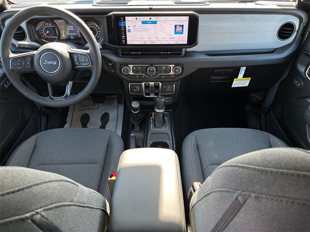 Gladiator Sport S, 4D Crew Cab, 3.6L V6 24V VVT, 8-Speed Automatic, 4WD, Anvil Clearcoat, Black Cloth, 110 MPH Vehicle Max Speed Calibration, 12.3 Touchscreen Display, 3.73 Rear Axle Ratio, 4-Wheel Disc Brakes, 4G LTE Wi-Fi Hot Spot, 8 Speakers, ABS brakes, Advanced Brake Assist, Air Conditioning, Air Conditioning w/Auto Temperature Control, Alexa Built-In, AM/FM radio: SiriusXM, Apple CarPlay, Apple CarPlay/Android Auto, Automatic Headlamps, Auxiliary Switches, Body Color 3-Piece Hard Top, Body Color Fender Flares (2-Piece), Brake assist, Class IV Receiver Hitch, Cloth Low-Back Bucket Seats, Cluster 7.0 TFT Color Display, Compass, Connectivity - US/Canada, Convenience Group, Corning Gorilla Glass, Dark Sky Appearance Package, Daytime Running Lamp System, Daytime Running Lamps LED Accents, Deep Tint Sunscreen Windows, Delay-off headlights, Driver door bin, Driver vanity mirror, Dual front impact airbags, Dual front side impact airbags, Electronic Stability Control, Emergency/Assistance Call, Enhanced Adaptive Cruise Control, Freedom Panel Storage Bag, Front anti-roll bar, Front Bucket Seats, Front Center Armrest w/Storage, Front Door Locks 2-Door Passive Entry, Front fog lights, Front LED Fog Lamps, Front reading lights, Full Speed Forward Collision Warning Plus, Google Android Auto, Heated Front Seats, Heated Steering Wheel, Heavy-Duty Engine Cooling, Illuminated entry, Integrated Center Stack Radio, Integrated roll-over protection, LED Headlamp & Fog Lamp Group, LED Premium Reflector Headlamps, Low tire pressure warning, Mold In Color Bumper w/Gloss Black, Molded-In-Color Fender Flares (2 Pcs Fr/1 Pc Rr), MOPAR Satin Black Grille, MOPAR Spray In Bedliner, No Soft Top, Normal Duty Plus Suspension, Normal Duty Suspension, Occupant sensing airbag, Outside temperature display, Overhead airbag, Panic alarm, ParkView Rear Back-Up Camera, Passenger door bin, Passenger vanity mirror, Performance Hood, Power Heated Mirrors, Power steering, Power windows, Premium Wrapped Steering Wheel, Quick Order Package 24S Sport S, Radio data system, Radio: Uconnect 5 w/12.3 Display, Rear anti-roll bar, Rear reading lights, Rear Sliding Window, Rear Window Defroster, Remote keyless entry, Remote Start System, Security Alarm, SiriusXM Radio Service, SiriusXM w/360L, Speed control, Split folding rear seat, Steering wheel mounted audio controls, Sun Visors w/Illuminated Vanity Mirrors, Tachometer, Telescoping steering wheel, Tilt steering wheel, Traction control, Trailer Hitch Zoom, Trailer Tow & Aux Switch Group, Trip computer, Universal Garage Door Opener, USB Host Flip, Variably intermittent wipers, Voltmeter, Wheels: 17 x 7.5 Black Steel Styled, Wheels: 17 x 7.5 Gray, Gladiator Sport S, 4D Crew Cab, 3.6L V6 24V VVT, 8-Speed Automatic, 4WD, Anvil Clearcoat, Black Cloth.