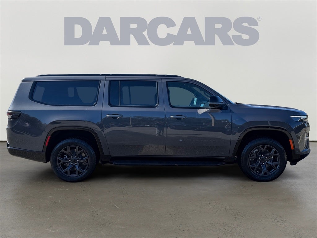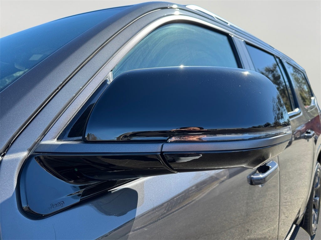 ABS brakes, Active Cruise Control, Alloy wheels, Compass, Electronic Stability Control, Front dual zone A/C, Heated door mirrors, Heated Exterior Mirrors, Heated front seats, Heated rear seats, Illuminated entry, Low tire pressure warning, Navigation System, Power Liftgate, Remote keyless entry, Traction control, 118 MPH Maximum Speed Calibration, 3.55 Rear Axle Ratio, 3rd row seats: bench, 4-Wheel Disc Brakes, 9 Speakers, Air Conditioning, AM/FM radio: SiriusXM with 360L, Anti-whiplash front head restraints, Apple CarPlay/Android Auto, Audio memory, Auto Adjust in Reverse Exterior Mirrors, Auto High-beam Headlights, Auto-dimming door mirrors, Auto-Dimming Exterior Driver Mirror, Auto-dimming Rear-View mirror, Auto-leveling suspension, Automatic temperature control, Brake assist, Bumpers: body-color, Delay-off headlights, Driver door bin, Driver vanity mirror, Driver's Seat Mounted Armrest, Dual front impact airbags, Dual front side impact airbags, Emergency communication system: Jeep Connect, Exterior Mirrors Approach Lamps, Exterior Mirrors with Memory, Exterior Mirrors with Supplemental Signals, Exterior Parking Camera Rear, Four wheel independent suspension, Front anti-roll bar, Front Bucket Seats, Front Center Armrest w/Storage, Front fog lights, Front reading lights, Fully automatic headlights, Garage door transmitter, Heated steering wheel, Knee airbag, Leather Trimmed Bucket Seats, Memory seat, Normal Duty Suspension, Occupant sensing airbag, Outside temperature display, Overhead airbag, Overhead console, Panic alarm, Passenger door bin, Passenger seat mounted armrest, Passenger vanity mirror, Power door mirrors, Power driver seat, Power passenger seat, Power steering, Power windows, Radio data system, Radio: Uconnect 5 Nav with 12 Display, Rain sensing wipers, Rear air conditioning, Rear anti-roll bar, Rear reading lights, Rear seat center armrest, Rear window defroster, Rear window wiper, Reclining 3rd row seat, Security system, Speed control, Speed-sensing steering, Speed-Sensitive Wipers, Split folding rear seat, Steering wheel memory, Steering wheel mounted audio controls, Tachometer, Telescoping steering wheel, Tilt steering wheel, Trip computer, Turn signal indicator mirrors, Variably intermittent wipers, Ventilated front seats, Voltmeter, and Wheels: 20 x 9.0 Machine Face Painted Aluminum.