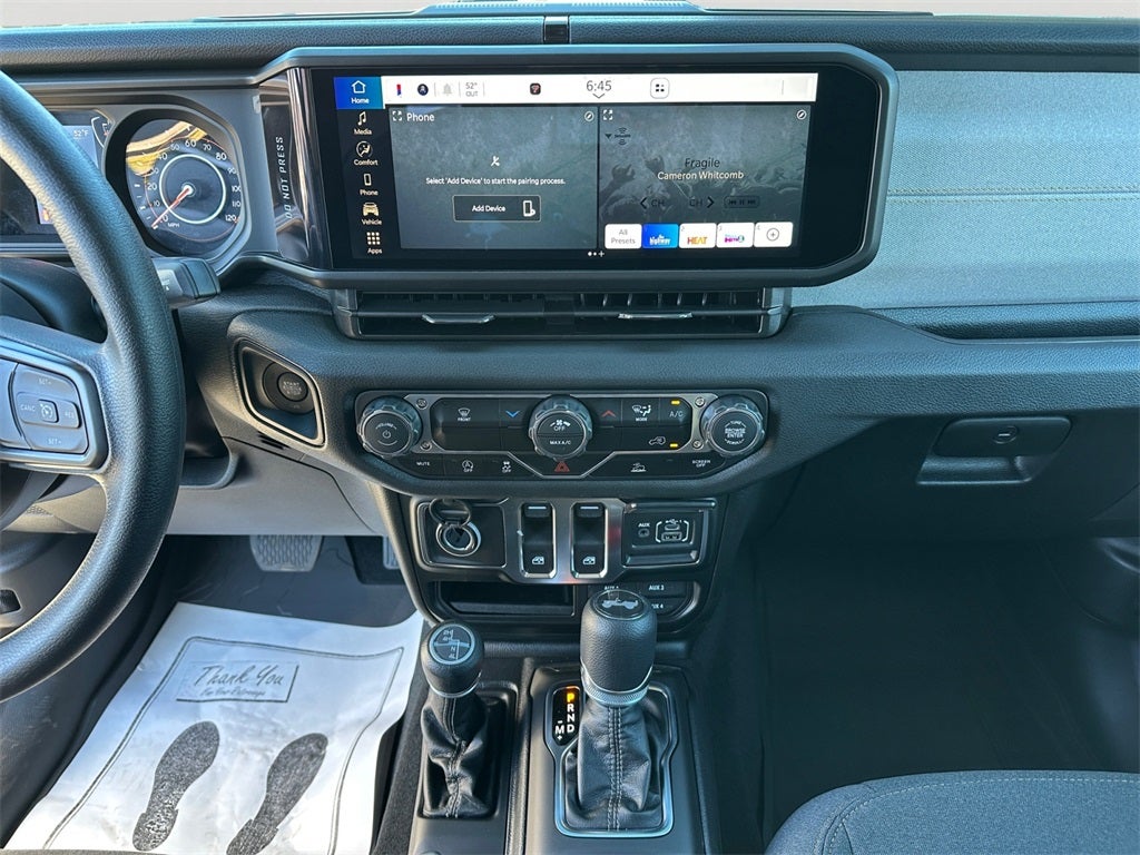 Wrangler Sport, 2D Sport Utility, 2.0L I4 DOHC, 8-Speed Automatic, 4WD, Bright White Clearcoat, Black Cloth, 3.45 Overall Top Gear Ratio, 4-Wheel Disc Brakes, 8 Speakers, ABS brakes, Air Conditioning, AM/FM radio: SiriusXM with 360L, Apple CarPlay/Android Auto, Aux Battery, Auxiliary Switches, Brake assist, Class II Receiver Hitch, Cloth Low-Back Bucket Seats, Compass, Deep Tint Sunscreen Windows, Delay-off headlights, Driver door bin, Driver vanity mirror, Dual front impact airbags, Dual front side impact airbags, Electronic Stability Control, Front anti-roll bar, Front Bucket Seats, Front Center Armrest w/Storage, Front fog lights, Front reading lights, Illuminated entry, Integrated roll-over protection, Low tire pressure warning, MOPAR All-Weather Floor Mats, Mopar Black Tubular Side Steps, Normal Duty Suspension, Occupant sensing airbag, Outside temperature display, Overhead airbag, Panic alarm, ParkView Rear Back-Up Camera, Passenger door bin, Passenger vanity mirror, Power steering, Power windows, Quick Order Package 22B Sport, Radio data system, Rear anti-roll bar, Rear reading lights, Remote keyless entry, Speed control, Steering wheel mounted audio controls, Stop-Start Dual Battery System, Tachometer, Telescoping steering wheel, Tilt steering wheel, Traction control, Trip computer, Variably intermittent wipers, Wheels: 17 x 7.5 Black Steel Styled, Wrangler Sport, 2D Sport Utility, 2.0L I4 DOHC, 8-Speed Automatic, 4WD, Bright White Clearcoat, Black Cloth.