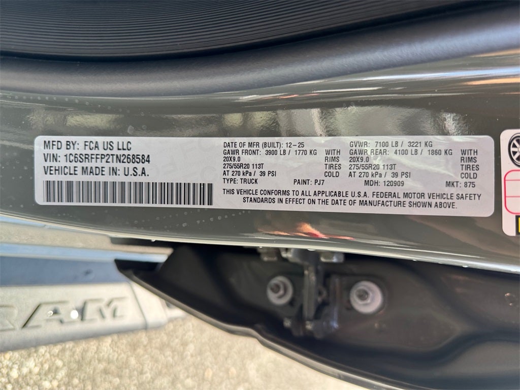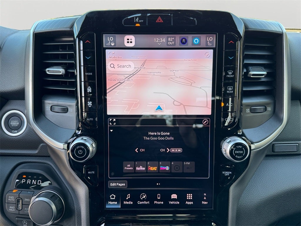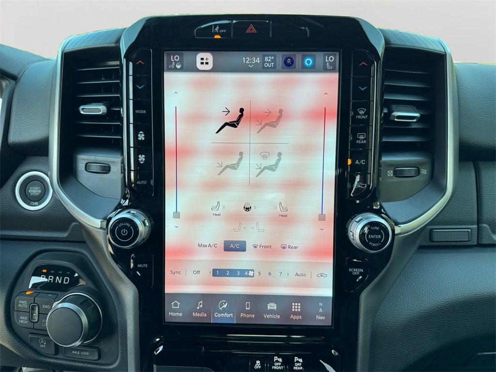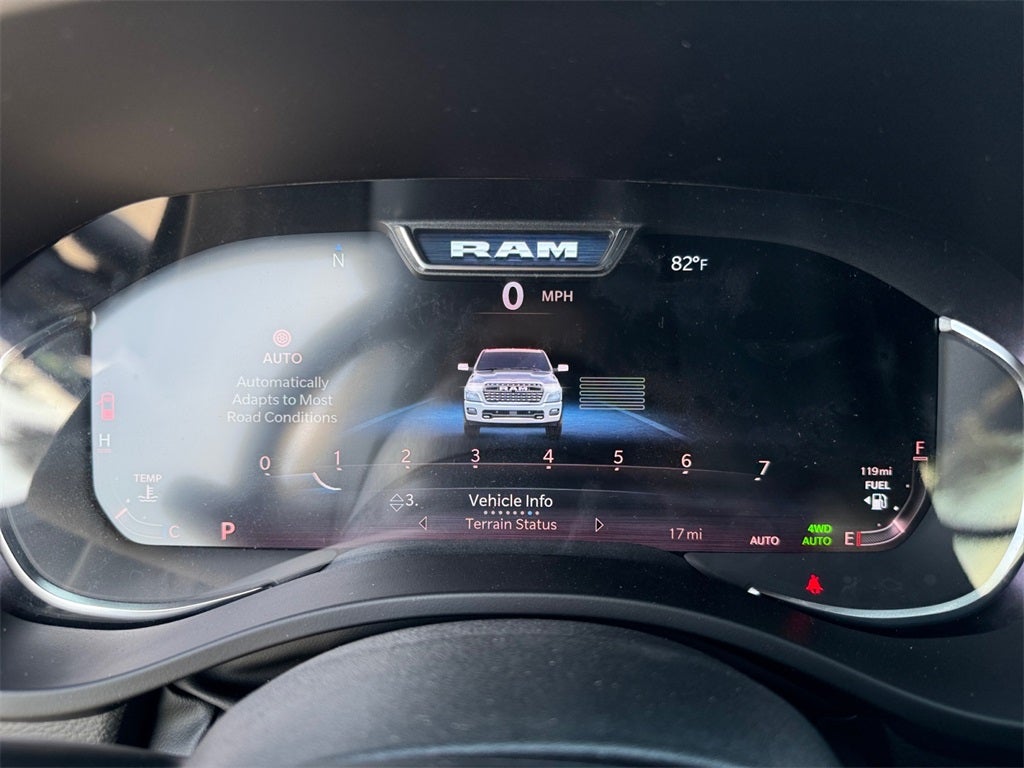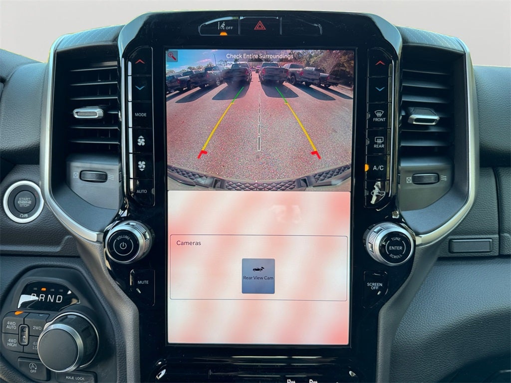 Big Horn Level 2 Equipment Group (115V Auxiliary Power Outlet, 115V Auxiliary Rear Power Outlet, 12 Touchscreen Display, 2nd Row in Floor Storage Bins, 3 Rear Seat Head Restraints, 4 Way Front Headrests, 400W Inverter, 4G LTE Wi-Fi Hot Spot, 9 Amplified Speakers with Subwoofer, Air Conditioning ATC with Dual Zone Control, Apple CarPlay, Auto Power-Folding Mirrors, Auto-Dimming Exterior Driver Mirror, Auto-Dimming Rear-View Mirror, Black Exterior Mirrors, Black Premium Power Mirrors, Body Color Fender Flares, Bucket Seats, Center Console Parts Module, Cluster 7.0 TFT Color Display, Configurable Drive Mode, Connected Travel and Traffic Services, Connectivity - US/Canada, Convex Wide-Angle Exterior Mirror Insert, Deluxe Cloth Bucket Seats, Disassociated Touchscreen Display, Exterior Mirrors Courtesy Lamps, Exterior Mirrors with Heating Element, Exterior Mirrors with Supplemental Signals, Front Seat Back Map Pockets, Full Length Floor Console, Global Telematics Box Module, Glove Box Lamp, Google Android Auto, GPS Antenna Input, GPS Navigation, HD Radio, Heated Front Seats, Heated Steering Wheel, Integrated Center Stack Radio, Integrated Voice Command with Bluetooth®, Leather Wrapped Steering Wheel, LED Dome Lamp with on/Off Switch, LED Footwell Lighting, Manual Adjust 4-Way Front Passenger Seat, Media Hub with 2 Charge Only USBs, Overhead LED Lamps, Power 2-Way Driver Lumbar Adjust, Power Adjust 8-Way Driver Seat, Power Adjustable Pedals, Premium Overhead Console, Radio: Uconnect 5 Navigation with 12.0 Display, Rear 60/40 Folding Seat, Rear Center Armrest, Rear Power Sliding Window, Rear Window Defroster, Remote Tailgate Release, Security Alarm, SiriusXM Radio Service, SiriusXM with 360L, Steering Wheel Mounted Audio Controls, Sun Visors with Illuminated Vanity Mirrors, Universal Garage Door Opener, and USB Host Flip), Night Edition (Accent Color Door Handles, Accent Color Premium Power Mirrors, Accent Color Tailgate Handle, Anti-Spin Differential Rear Axle, Black Exterior Truck Badging, Black Headlamp Bezels, Black Interior Accents, Black Painted Exterior Mirrors Caps, Black Tail Lamp Bezels, Body Color Front Bumper, Body Color Rear Bumper with Step Pads, Dual Exhaust with Black Tips, Grille Black Surround Black Mesh, RAM Grille Badge - Black, and Wheels: 20 x 9.0 Aluminum Painted Clad), Quick Order Package 21Z Big Horn, 230 Amp Alternator, 33 Gallon Fuel Tank, 4-Wheel Disc Brakes, 48V Belt Starter Generator, 6 Speakers, 700 Amp Maintenance Free Battery, ABS brakes, Active Noise Control System, Air Conditioning, Alloy wheels, AM/FM radio, Apple CarPlay/Android Auto, Auto High-beam Headlights, Aux Battery, Brake assist, Bridgestone Brand Tires, Bumpers: chrome, Cloth Bucket Seats, Cluster 12 TFT Color Display, Compass, Delay-off headlights, Driver door bin, Dual front impact airbags, Dual front side impact airbags, E-Locker Rear Axle, Electronic Stability Control, Front anti-roll bar, Front Bucket Seats, Front Center Armrest w/Storage, Front fog lights, Front reading lights, Front wheel independent suspension, Fully automatic headlights, Heated door mirrors, Illuminated entry, Low tire pressure warning, Manual Adjust 4-Way Driver Seat, Manual Folding Exterior Mirrors, Mopar Black Tubular Side Steps, MOPAR Front and Rear Rubber Floor Mats, Occupant sensing airbag, Outside temperature display, Overhead airbag, Overhead console, Panic alarm, ParkView Rear Back-Up Camera, Passenger door bin, Passenger vanity mirror, Power door mirrors, Power steering, Power windows, Radio data system, Radio: Uconnect 5 W with 8.4 Display, RAM Grille Badge - Chrome, Rear anti-roll bar, Rear step bumper, Rear Underseat Compartment Storage, Rear Wheelhouse Liners, Remote keyless entry, Speed control, Start-Stop Dual Battery System, Supplier Part Tracking (J-1), Tachometer, Telescoping steer