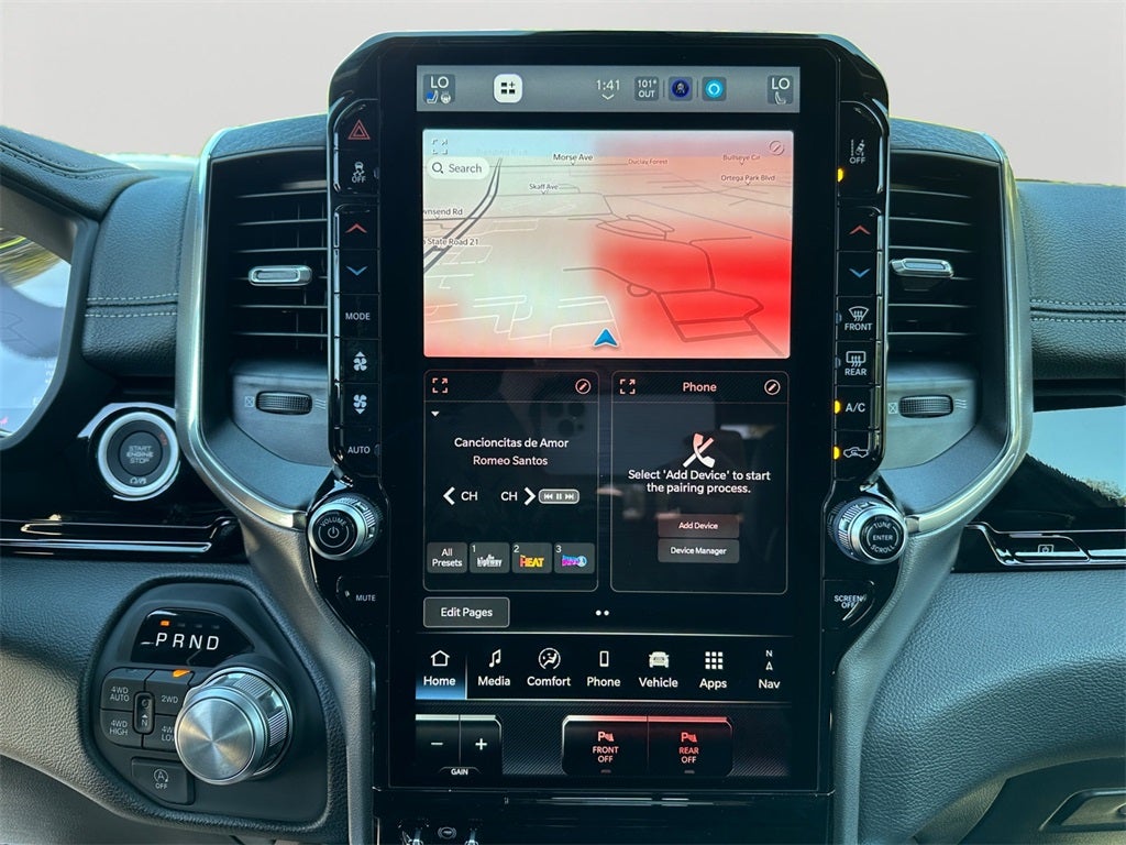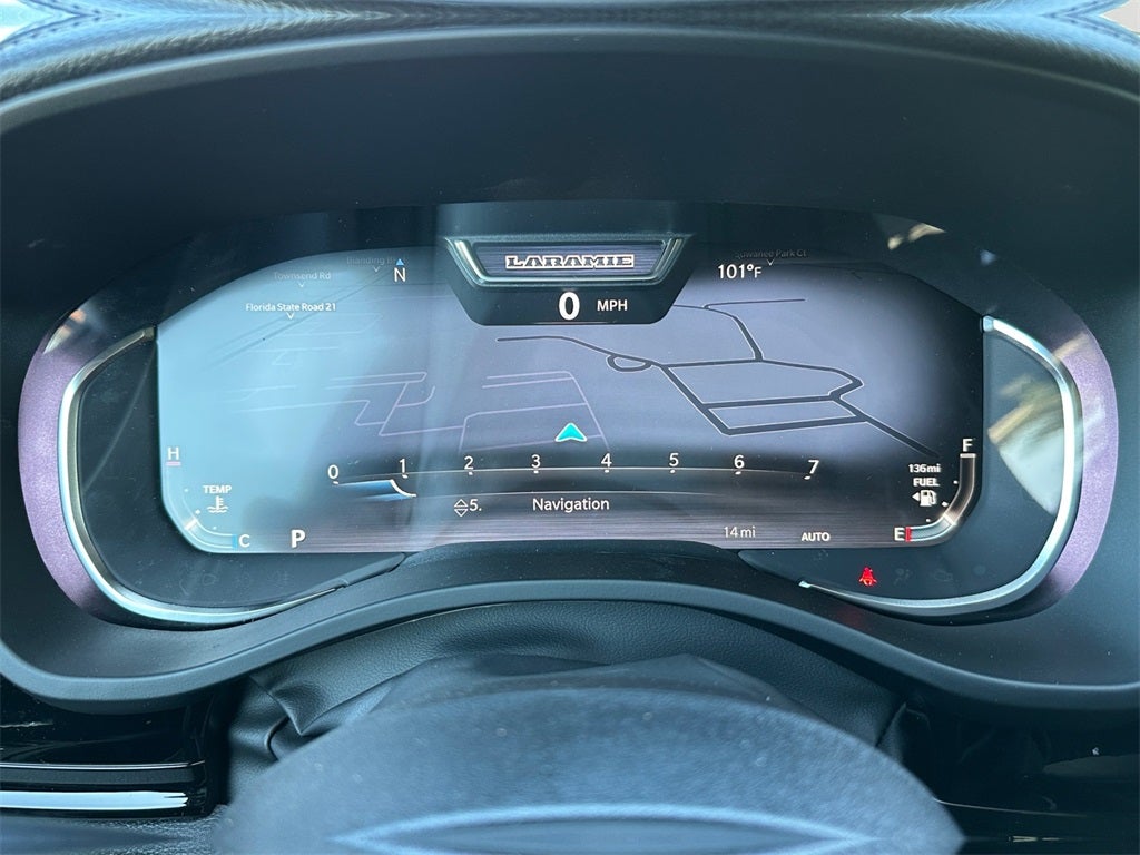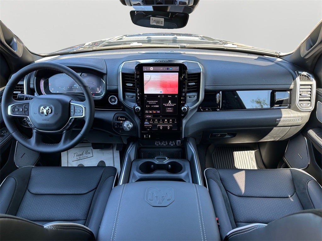 1500 Laramie, 4D Crew Cab, 3.0L I6, 8-Speed Automatic, 4WD, Forged Blue Metallic, Black Leather, 10 Speakers, 14.4 Touchscreen Display, 3.55 Rear Axle Ratio, 33 Gallon Fuel Tank, 4-Wheel Disc Brakes, 4G LTE Wi-Fi Hot Spot, ABS brakes, Accent Color Premium Power Mirrors, Active Noise Control System, Air Conditioning, Alloy wheels, AM/FM radio: SiriusXM with 360L, Anti-Spin Differential Rear Axle, Apple CarPlay/Android Auto, Audio memory, Auto High-beam Headlights, Auto Power-Folding Mirrors, Auto-dimming door mirrors, Auto-Dimming Exterior Driver Mirror, Auto-dimming Rear-View mirror, Automatic temperature control, Aux Battery, Black Interior Accents, Black Painted Exterior Mirrors Caps, Body Color Front Bumper, Brake assist, Bridgestone Brand Tires, Bumpers: chrome, Chrome Exterior Mirrors, Cluster 12 TFT Color Display, Compass, Connectivity - US/Canada, Convex Wide-Angle Exterior Mirror Insert, Delay-off headlights, Driver door bin, Driver vanity mirror, Dual front impact airbags, Dual front side impact airbags, Electronic Stability Control, Exterior Mirrors Courtesy Lamps, Front anti-roll bar, Front Bucket Seats, Front Center Armrest w/Storage, Front dual zone A/C, Front fog lights, Front Passenger Interactive Display, Front reading lights, Front wheel independent suspension, Fully automatic headlights, Garage door transmitter, GPS Navigation, Grille Surround 3 Body Color Tex 2 Black, Heated door mirrors, Heated front seats, Heated rear seats, Heated steering wheel, Illuminated entry, Integrated Center Stack Radio, Laramie Level 2 Equipment Group, Leather steering wheel, Leather Trimmed Bucket Seats, Low tire pressure warning, Memory seat, Navigation System, Occupant sensing airbag, Off-Road Information Pages, Outside temperature display, Overhead airbag, Overhead console, Panic alarm, ParkView Rear Back-Up Camera, Passenger door bin, Passenger vanity mirror, Pirelli Brand Tires, Power Deployable Running Boards, Power door mirrors, Power driver seat, Power passenger seat, Power steering, Power Tailgate, Power windows, Quick Order Package 21H Laramie, Radio data system, Rain Sensitive Windshield Wipers, RAM Grille Badge - Chrome, Rear anti-roll bar, Rear reading lights, Rear seat center armrest, Rear step bumper, Remote keyless entry, Security system, SiriusXM Radio Service, Speed control, Split folding rear seat, Sport Appearance Package, Sport Performance Hood, Steering wheel mounted audio controls, Tachometer, Telescoping steering wheel, Tilt steering wheel, Traction control, Trailer Brake Control, Trip computer, Turn signal indicator mirrors, USB Host Flip, Variably intermittent wipers, Ventilated front seats, Voltmeter, Wheels: 20 x 9 Premium Paint/Polish, Wheels: 22 x 9 Forged Aluminum, 1500 Laramie, 4D Crew Cab, 3.0L I6, 8-Speed Automatic, 4WD, Forged Blue Metallic, Black Leather.
