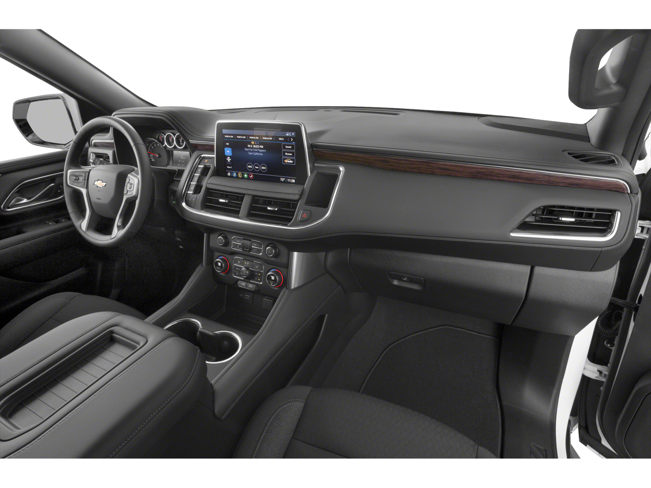 Advanced Trailering Package (Advanced Trailering System, Hitch Guidance w/Hitch View, and Integrated Trailer Brake Controller), Driver Alert Package (Front & Rear Park Assist, Lane Change Alert w/Side Blind Zone Alert, Lane Keep Assist w/Lane Departure Warning, and Rear Cross Traffic Alert), Max Trailering Package (Extra Capacity Cooling System), Preferred Equipment Group 1LS (1st & 2nd Row Color-Keyed Carpeted Floor Mats, 2 USB Data Ports, Color-Keyed Carpeting Floor Covering, Driver & Front Outboard Passenger Airbags, Floor Console w/Storage Area, HD Radio, Infotainment Display, Leather-Wrapped Steering Wheel, LED Daytime Running Lamps, Remote Start, and SiriusXM Radio w/360L), Jet Black Cloth, 3.23 Rear Axle Ratio, 3rd row seats: split-bench, 4-Wheel Disc Brakes, 6 Speakers, 6-Speaker Audio System Feature, ABS brakes, Air Conditioning, Alloy wheels, AM/FM radio: SiriusXM with 360L, Apple CarPlay/Android Auto, Auto High-beam Headlights, Automatic temperature control, Brake assist, Bumpers: body-color, Compass, Delay-off headlights, Driver door bin, Driver vanity mirror, Dual front impact airbags, Dual front side impact airbags, Electronic Stability Control, Emergency communication system: OnStar and Chevrolet connected services capable, Four wheel independent suspension, Front anti-roll bar, Front Bucket Seats, Front Center Armrest, Front dual zone A/C, Front High-Back Reclining Bucket Seats, Front reading lights, Fully automatic headlights, Heated door mirrors, Illuminated entry, Leather steering wheel, Low tire pressure warning, Occupant sensing airbag, Outside temperature display, Overhead airbag, Overhead console, Panic alarm, Passenger door bin, Passenger vanity mirror, Power door mirrors, Power driver seat, Power passenger seat, Power steering, Power windows, Premium audio system: Chevrolet Infotainment 3, Premium Cloth Seat Trim, Premium Smooth Ride Suspension, Radio: Chevrolet Infotainment 3 Plus System, Rain sensing wipers, Rear air conditioning, Rear anti-roll bar, Rear reading lights, Rear seat center armrest, Rear window defroster, Rear window wiper, Remote keyless entry, Roof rack: rails only, Security system, Speed control, Speed-sensing steering, Split folding rear seat, Spoiler, Steering wheel mounted audio controls, Tachometer, Telescoping steering wheel, Tilt steering wheel, Traction control, Trip computer, Variably intermittent wipers, Voltmeter, Wheels: 18 x 8.5 Bright Silver Painted Aluminum, and Wheels: 20 x 9 Painted Aluminum.