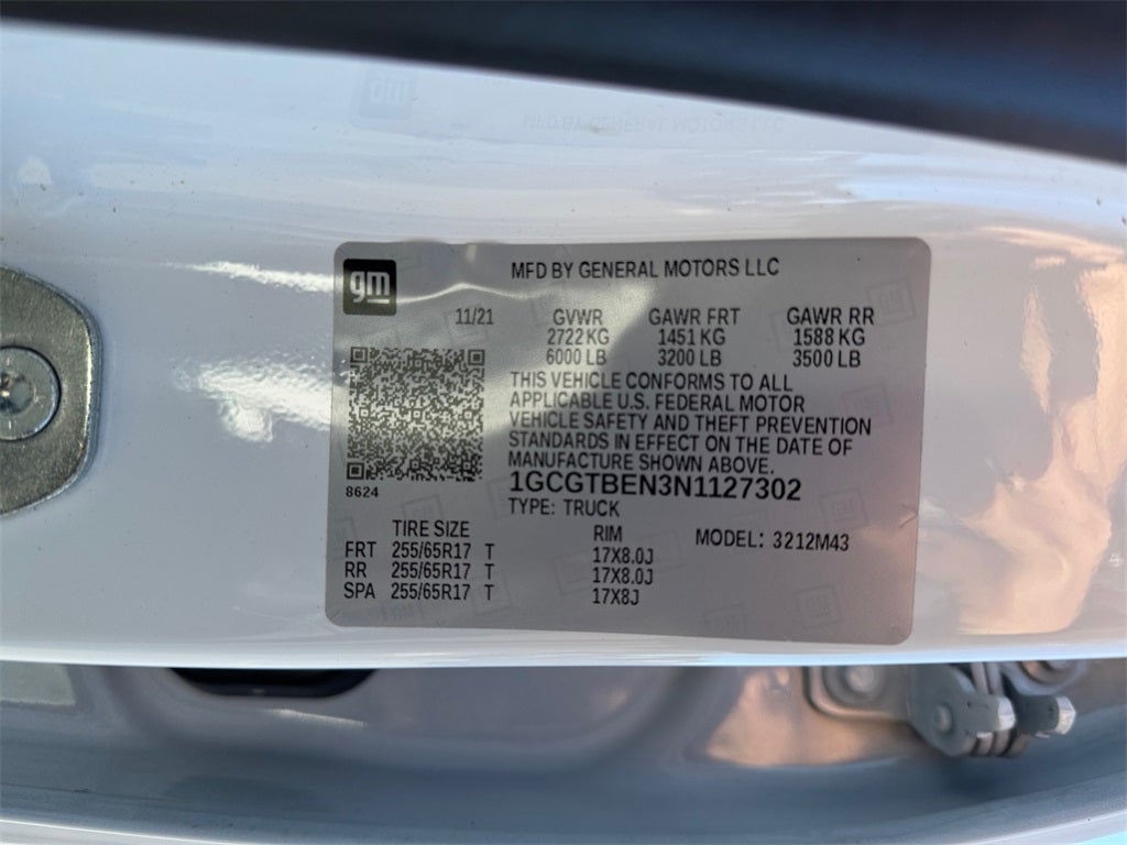 Colorado Work Truck, 4D Crew Cab, V6, 8-Speed Automatic, 4WD, Summit White, Jet Black/Dark Ash Vinyl, 3.42 Rear Axle Ratio, 4-Wheel Disc Brakes, 6 Speakers, 6-Speaker Audio System Feature, ABS brakes, Air Conditioning, AM/FM radio: SiriusXM, Apple CarPlay/Android Auto, Automatic Locking Rear Differential, Black Spray-On Bedliner w/Chevrolet Logo, Bumpers: body-color, Delay-off headlights, Driver 4-Way Power Seat Adjuster, Driver door bin, Dual front impact airbags, Dual front side impact airbags, Electronic Automatic Cruise Control, Electronic Stability Control, Extended Range Remote Keyless Entry, Exterior Parking Camera Rear, EZ-Lift & Lower Tailgate, Front anti-roll bar, Front Bucket Seats, Front Center Armrest, Front wheel independent suspension, Fully automatic headlights, Heavy-Duty Trailering Package, Low tire pressure warning, Occupant sensing airbag, Overhead airbag, Passenger door bin, Passenger vanity mirror, Performance Skid Plate Package (LPO), Power driver seat, Power steering, Power windows, Preferred Equipment Group 4WT, Premium audio system: Chevrolet Infotainment 3, Radio data system, Radio: Chevrolet Infotainment 3 System, Rear seat center armrest, Rear step bumper, Remote Locking Tailgate, SiriusXM Radio, Speed-sensing steering, Tachometer, Tilt steering wheel, Traction control, Trip computer, Unauthorized Entry Theft-Deterrent System, Variably intermittent wipers, Vinyl Seat Trim, Wheels: 17 x 8 Ultra Silver Metallic Steel, WT Convenience Package, Colorado Work Truck, 4D Crew Cab, V6, 8-Speed Automatic, 4WD, Summit White, Jet Black/Dark Ash Vinyl.