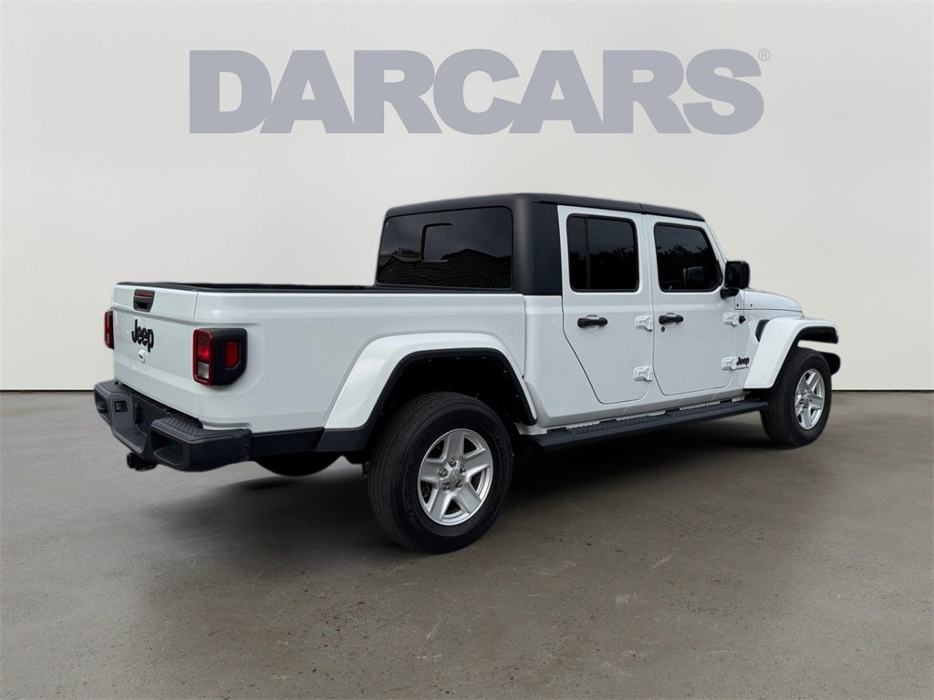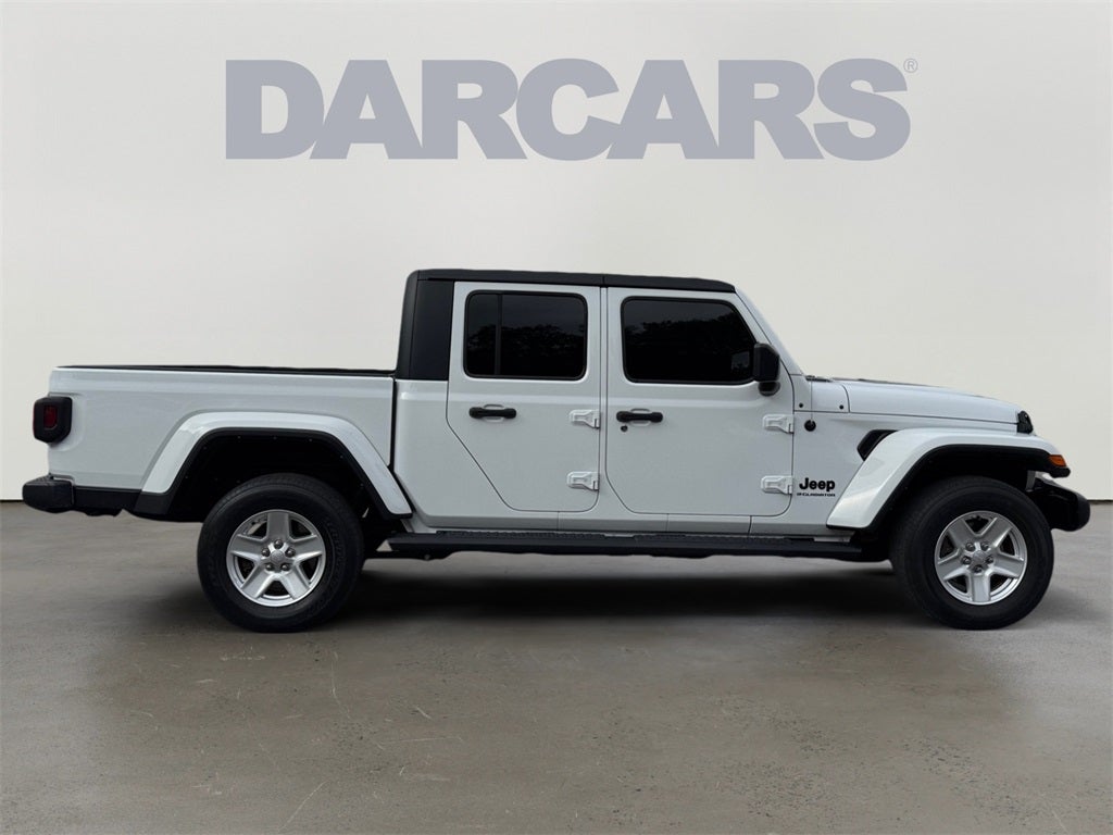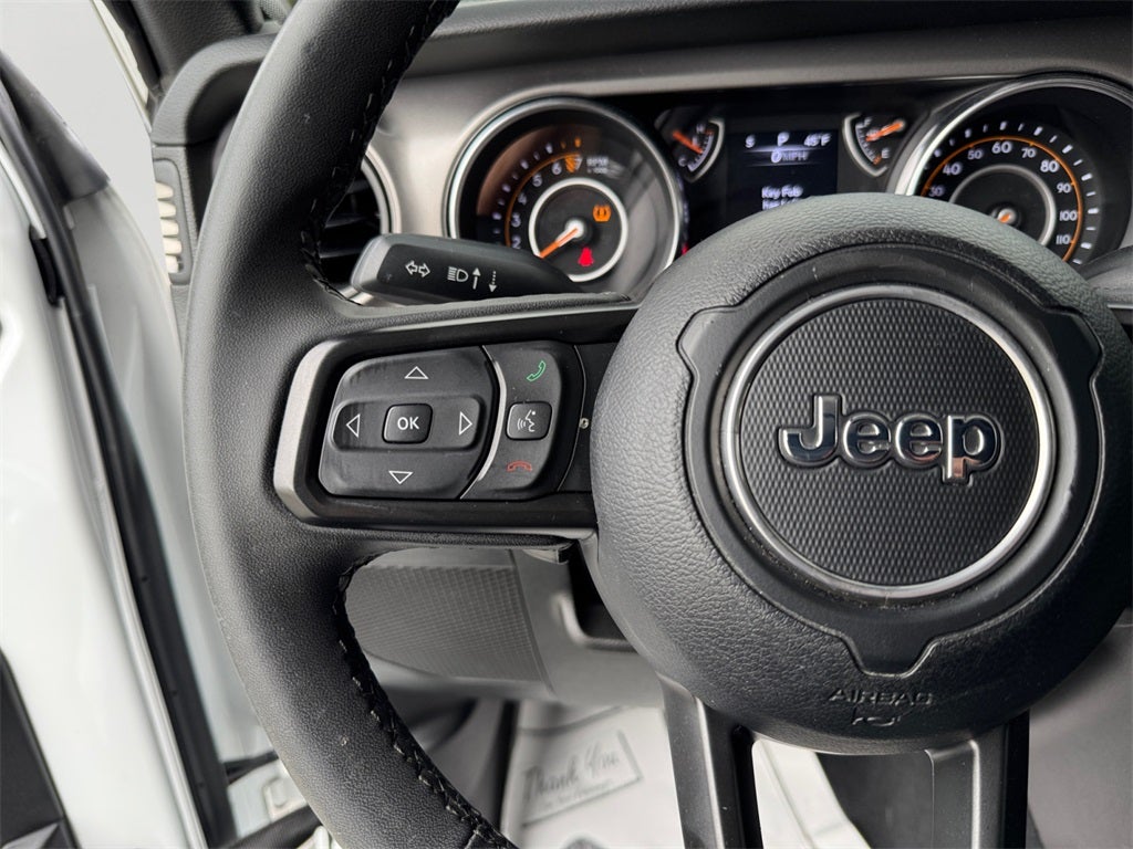 Convenience Group, Popular Equipment Package (TAN 3-Piece Hard Top), Quick Order Package 24S Sport S (Automatic Headlamps, Deep Tint Sunscreen Windows, Front 1-Touch Down Power Windows, Normal Duty Plus Suspension, Power Heated Mirrors, Power Tailgate Lock, Premium Wrapped Steering Wheel, Remote Keyless Entry, Security Alarm, Speed Sensitive Power Locks, Sport S, Sun Visors w/Illuminated Vanity Mirrors, and Wheels: 17 x 7.5 Tech Silver Aluminum), Trailer Tow Package (240 Amp Alternator, Class IV Receiver Hitch, Heavy-Duty Engine Cooling, and Trailer Hitch Zoom), Gladiator Sport, 4D Crew Cab, 3.6L V6 24V VVT, 8-Speed Automatic, 4WD, Bright White Clearcoat, Black Cloth, 3.73 Rear Axle Ratio, 4-Wheel Disc Brakes, 4G LTE Wi-Fi Hot Spot, 8 Speakers, ABS brakes, Air Conditioning, AM/FM radio, Apple CarPlay, Apple CarPlay/Android Auto, Brake assist, Cloth Low-Back Bucket Seats, Compass, Delay-off headlights, Driver door bin, Driver vanity mirror, Dual front impact airbags, Dual front side impact airbags, Electronic Stability Control, Emergency communication system, Front anti-roll bar, Front Bucket Seats, Front Center Armrest w/Storage, Front fog lights, Front License Plate Bracket, Front reading lights, Google Android Auto, GPS Antenna Input, Integrated Center Stack Radio, Integrated roll-over protection, Integrated Voice Command w/Bluetooth®, Low tire pressure warning, Mopar Black Tubular Side Steps, MOPAR Spray In Bedliner, Normal Duty Suspension, Occupant sensing airbag, Outside temperature display, ParkView Rear Back-Up Camera, Passenger door bin, Passenger vanity mirror, Power steering, Radio data system, Radio: Uconnect 4 w/7 Display, Rear anti-roll bar, Rear reading lights, Speed control, Split folding rear seat, Steeri