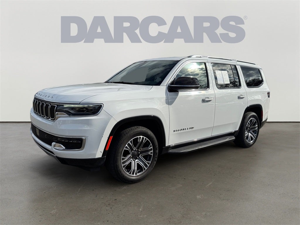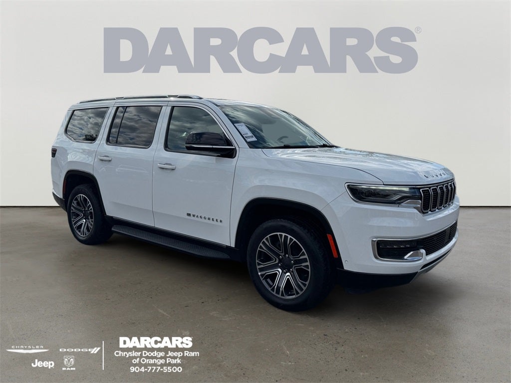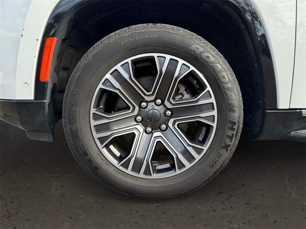 *CLEAN CARFAX*, Wagoneer Series II, 4D Sport Utility, 3.0L I6, 8-Speed Automatic, 4WD, Bright White Clearcoat, Black Leather, 10 Speakers, 118 MPH Maximum Speed Calibration, 3.55 Rear Axle Ratio, 3rd row seats: bench, 4-Wheel Disc Brakes, ABS brakes, Adjustable pedals, Air Conditioning, Alloy wheels, AM/FM radio: SiriusXM with 360L, Anti-whiplash front head restraints, Apple CarPlay/Android Auto, Audio memory, Auto-dimming door mirrors, Auto-dimming Rear-View mirror, Auto-leveling suspension, Automatic temperature control, Brake assist, Bumpers: body-color, Compass, Delay-off headlights, Driver door bin, Driver vanity mirror, Driver's Seat Mounted Armrest, Dual front impact airbags, Dual front side impact airbags, Electronic Stability Control, Emergency communication system: Wagoneer Connect, Exterior Parking Camera Rear, Four wheel independent suspension, Front anti-roll bar, Front Bucket Seats, Front Center Armrest w/Storage, Front dual zone A/C, Front fog lights, Front reading lights, Fully automatic headlights, Garage door transmitter, Genuine wood console insert, Genuine wood dashboard insert, Genuine wood door panel insert, Heated door mirrors, Heated front seats, Heated rear seats, Heated steering wheel, Illuminated entry, Knee airbag, Leather Trimmed Bucket Seats, Low tire pressure warning, Memory seat, Navigation System, Normal Duty Suspension, Occupant sensing airbag, Outside temperature display, Overhead airbag, Overhead console, Panic alarm, Passenger door bin, Passenger seat mounted armrest, Passenger vanity mirror, Pedal memory, Power adjustable front head restraints, Power door mirrors, Power driver seat, Power Liftgate, Power passenger seat, Power steering, Power windows, Quick Order Package 25J, Radio data system, Radio: Uconnect 5 Nav w/10.1 Display, Rain sensing wipers, Rear air conditioning, Rear anti-roll bar, Rear dual zone A/C, Rear reading lights, Rear seat center armrest, Rear window defroster, Rear window wiper, Reclining 3rd row seat, Remote keyless entry, Security system, Speed control, Speed-sensing steering, Speed-Sensitive Wipers, Split folding rear seat, Steering wheel memory, Steering wheel mounted audio controls, Tachometer, Telescoping steering wheel, Tilt steering wheel, Traction control, Trip computer, Turn signal indicator mirrors, Variably intermittent wipers, Ventilated front seats, Voltmeter, Wheels: 20 x 9.0 Premium 2 Aluminum, Wagoneer Series II, 4D Sport Utility, 3.0L I6, 8-Speed Automatic, 4WD, Bright White Clearcoat, Black Leather.
