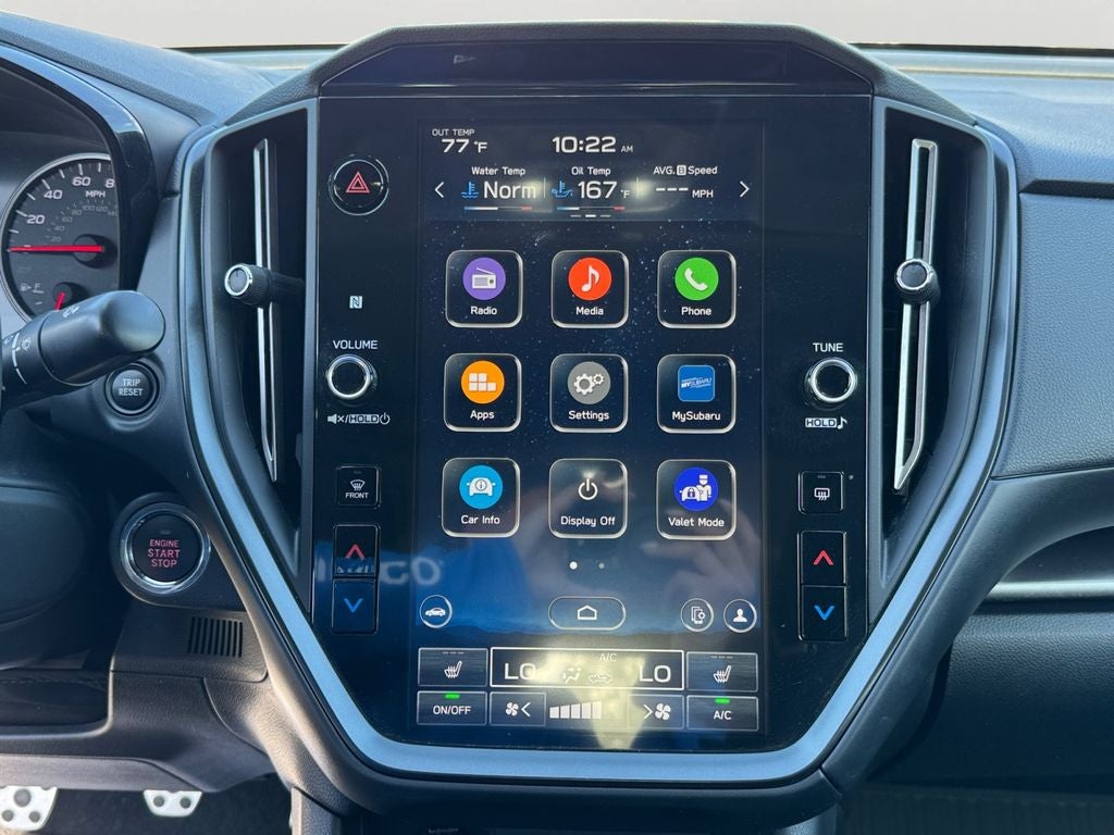- Radio: Subaru STARLINK 11.6" Multimedia Plus Sys -inc: AM/FM stereo HD Radio, multi-touch gesture high resolution display screen, voice activated controls, Bluetooth® audio streaming connectivity, Bluetooth® hands-free phone connectivity, Bluetooth® hands-free SMS text messaging connectivity (applicable w/compatible cell phone), Near Field Communication (NFC), iPod control capability, rear-vision camera display, SiriusXM All Access radio (4 months free trial/subscription required after), SiriusXM w/360L (4 months free platinum trial included/subscription required after), SiriusXM Travel Link (4 months free trial/subscription required after), smartphone integration: Android Auto w/full screen view and wireless connection, Apple CarPlay w/full screen view and wireless connection, STARLINK cloud applications, USB and Over The Air (OTA) audio system update, 6 speakers and roof mounted audio, satellite and connected services antenna